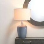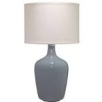 Table Lamp in Dove Grey Glass w/ Drum Shade in Pebble Linen