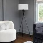 LAMPz® 58in Tripod Floor Lamp with White Linen Shade, Black or Brass