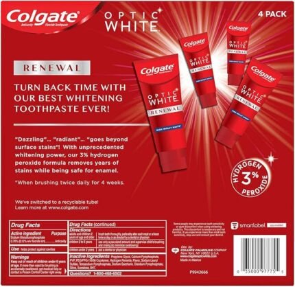 • Four 4.1 oz tubes of Colgate Optic White Platinum Toothpaste