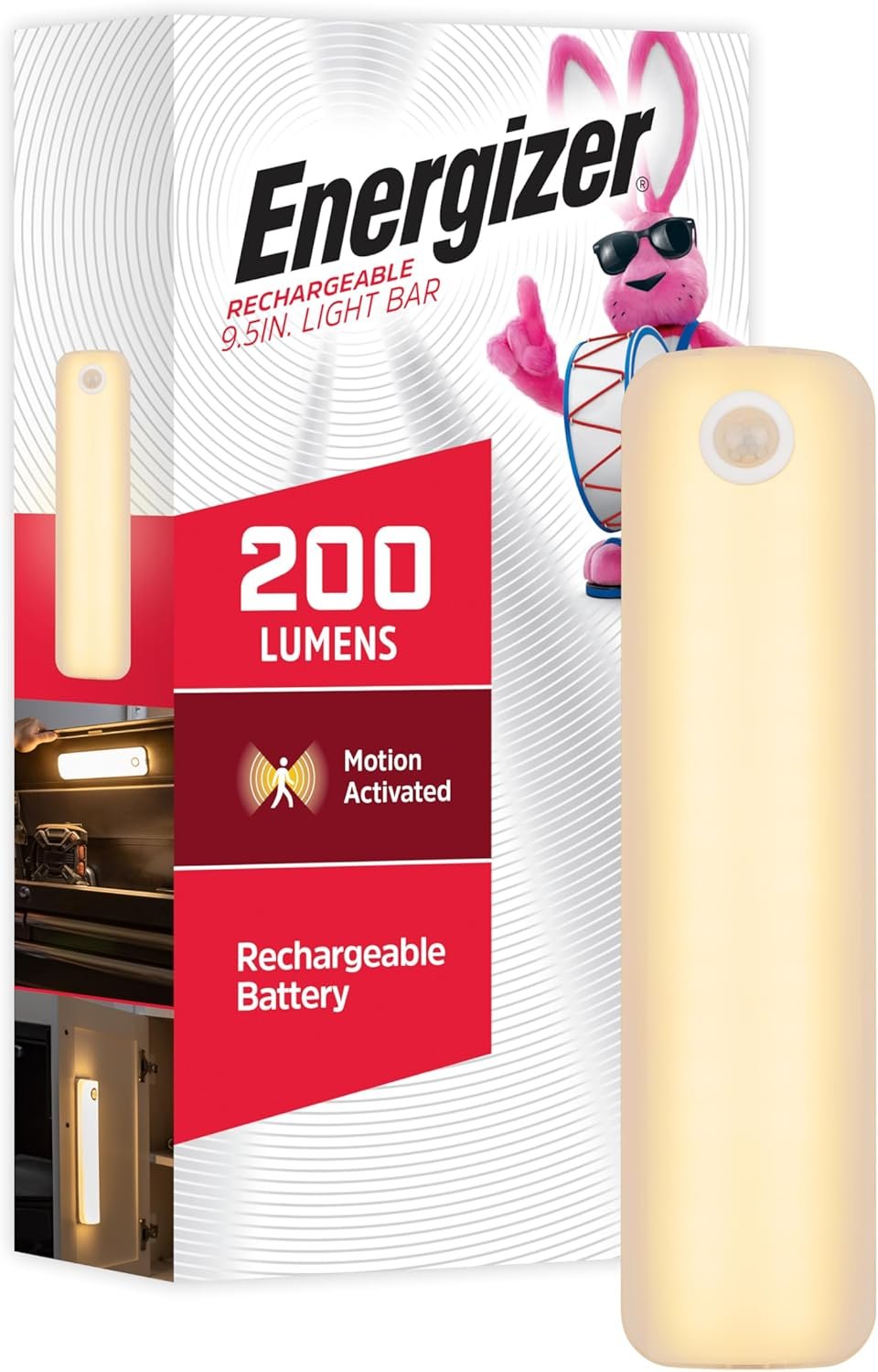 Put reliable lighting where you need it the most with the Energizer Rechargeable Light Bar. Featuring 200 lumens of high-quality white light, the set of two motion-sensing light bars is perfect for garages, cabinets, RVs, hallways, sheds, attics and much more. The rechargeable 3.7V, 800mAh lithium polymer battery is long lasting — ensuring you’ll never be without light. A 1.5ft. USB-C cable is provided to charge the battery from a USB-A adapter or port (adapter not included). Use the power button to select ON, motion-sensing or off modes. In motion-sensing mode, the light automatically turns on when movement is detected within 15ft. A dimming button allows full-range brightness adjustment or the choice of four preset levels. Each light bar installs in a wide variety of places throughout your home. The magnetic back of the light bars attaches to most metal surfaces. For nonmetallic surfaces, self-adhesive tabs are included to enhance convenience. Thoroughly tested for safety and certified for your peace of mind, the light bars provide the glow your space deserves. For easy, reliable, high-quality illumination, choose the Energizer Rechargeable Light Bar.