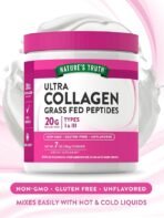 This easy-to-take powder from Nature’s Truth supplies 20 grams of type 1 and 3 hydrolyzed collagen per daily serving to support your routine. Made from grass-fed, pasture-raised bovine, Ultra Collagen Powder is a convenient, unflavored formula that can be stirred into any hot or cold drink, a smoothie, or a favorite recipe. It dissolves quickly and is easily absorbable!